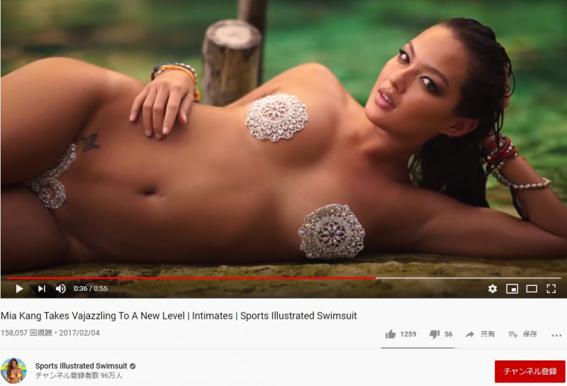大胆水着でグラマラスボディを披露するミア・カン(スポーツ・イラストレイテッド水着特集号YouTubeより)