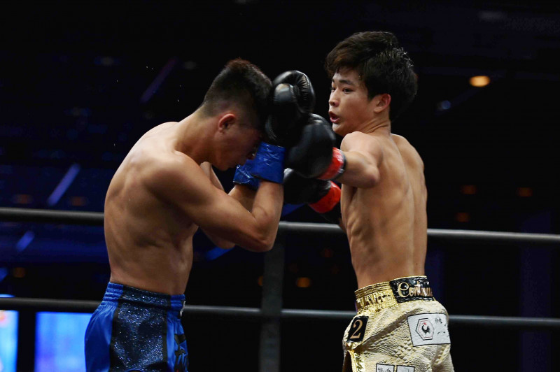 多彩なパンチを見せる有井(右)