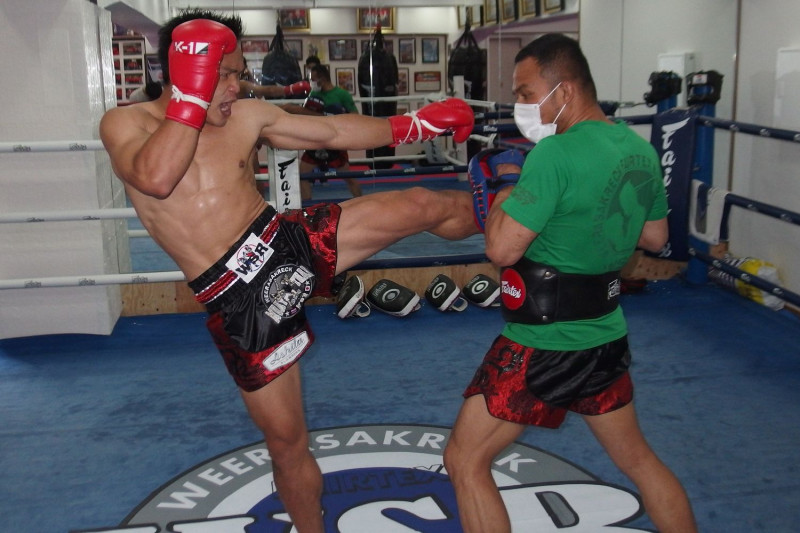 公開練習で鋭い蹴りを放つゴンナパー (C)Krush