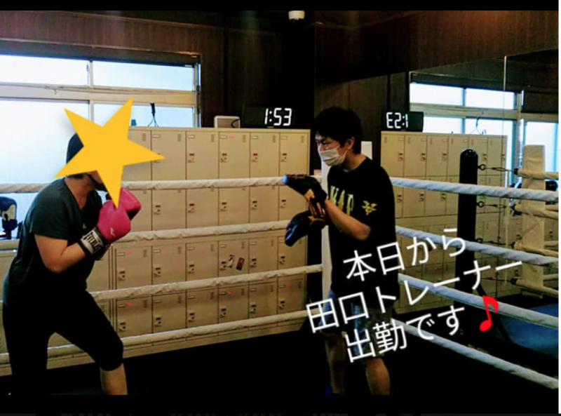 田口が内山のジムに入社しミットを持つ
