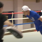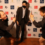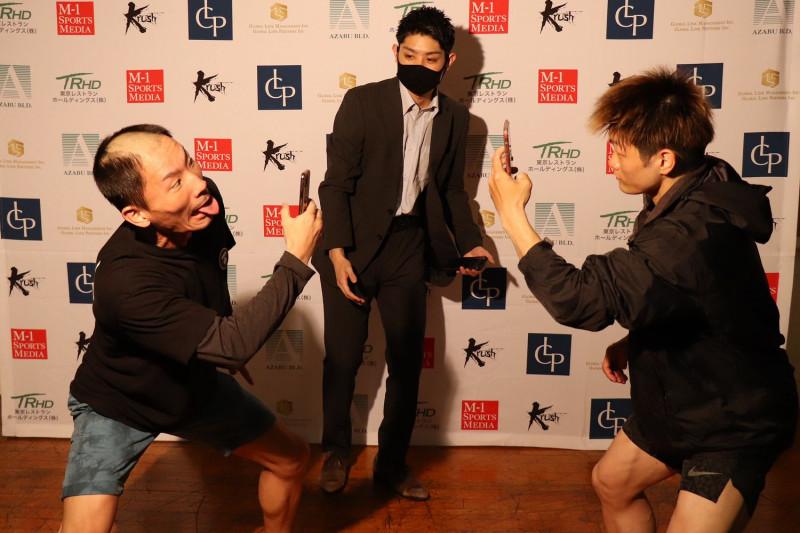 相手をカメラに収める”カメラボクシング”でファイトする両者