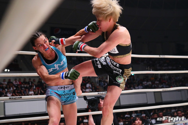昨年のRIZINで浜崎に左ストレートを打ち込むフレイ