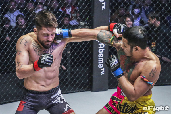 ヨードセングライ(右)がサワーにパンチを振るう(c)ONE