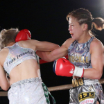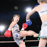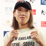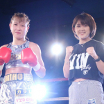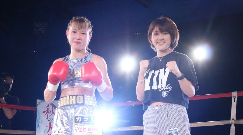 高梨(左)が階級アップ初戦で勝利、MIOもリングに上がり祝福