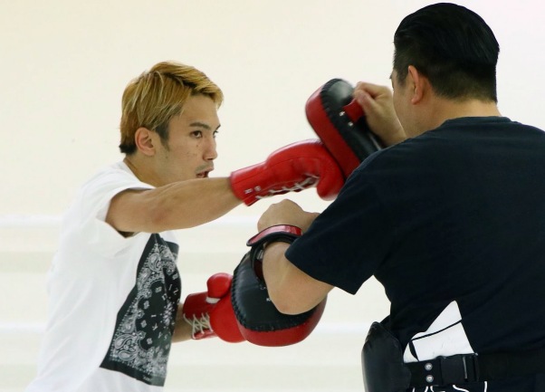 パンチをミットに打ち込む佐々木(右)(C)Krush