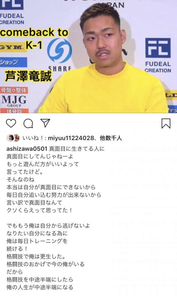 芦澤が自身のSNSで思いを綴った(芦澤のSNSより)