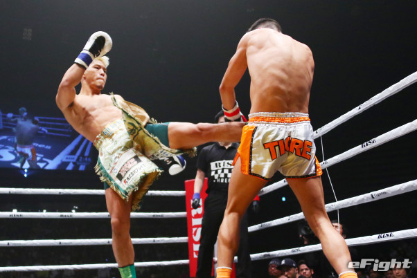 三日月蹴りで一撃KO勝利する原口=19年3月