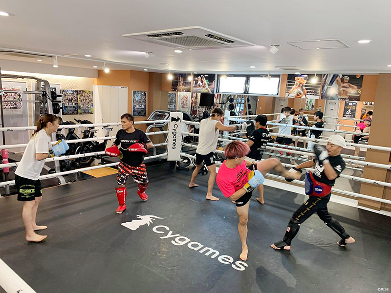 同じリング上で練習する寺山(左)、白鳥(左から3番目)、那須川(左から4番目)