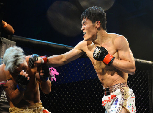強烈なパンチを打ち込む小川(19年9月)