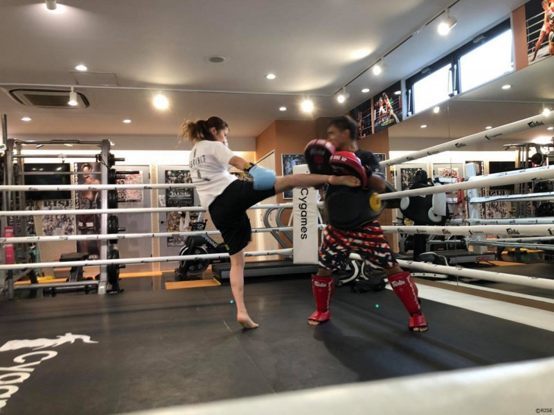 ミドルキックを蹴り込む寺山