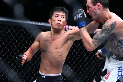 UFC参戦時の水垣(写真は15年のUFC JAPAN、判定勝利を納める)