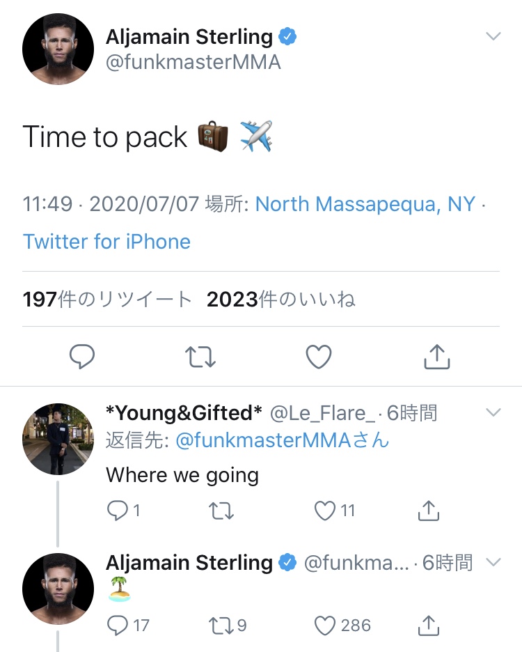 急遽出場要請を受けたかと思わせるスターリングのSNS @funkmasterMMA