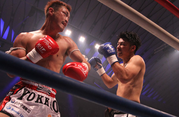 格上の大和’(左)と果敢に打ち合う近藤(右)=昨年8月