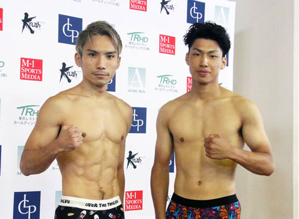 明日のメインイベントで対戦する王者・佐々木(左)と挑戦者の近藤(右)