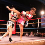 2月に平岡が見せた後ろ回し蹴り、女子離れした蹴り技は一撃必倒の威力を持つ