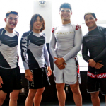 笑顔を見せるIGLOOメンバー(左から)米倉、鹿志村、山中、イゴール、大浦、岩本