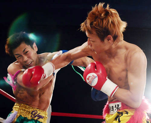 2012年のKrush-EXで、強烈な右フックでKO勝利した武尊(右)