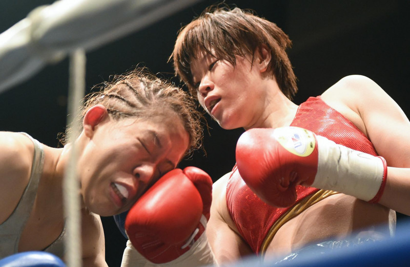 山本のプロボクサー時代。16年8月、3RTKO勝ちでWBA女子世界ライトミニマム級王者となった。(Photo:Naoki Fukuda)