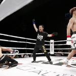 RISEでの笠原戦後、インタビューに応じる那須川=7月12日
