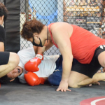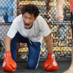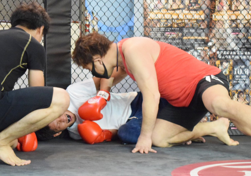 和田犬のダウンにレフェリーの入江が詰め寄る
