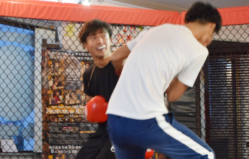 対するジム生の佐藤(左)はボクシングルールで迎え撃った