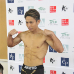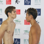 バチバチのフェイスオフを展開するレオナ(左)と大岩(右)
