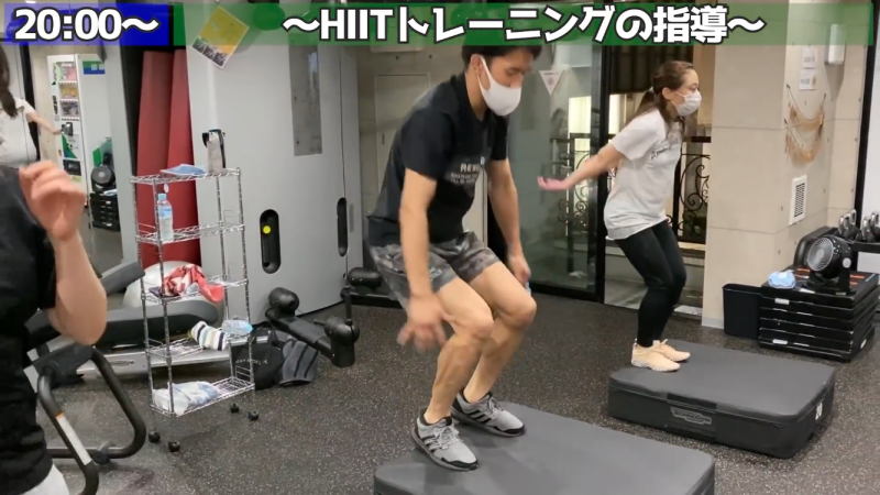 夜はジムの会員を指導、HIITトレーニングで共に汗を流す。トレーニング漬けの一日だ(KAI Channel / 朝倉海より)