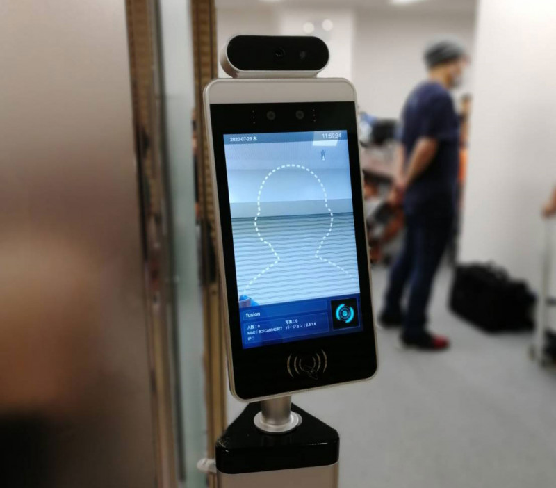 計量会場に設置された検温マシン。その他マスク50枚が選手全員に支給されるなどコロナ対策が実施された