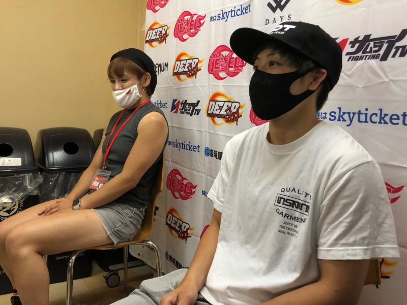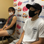 大会終了後に囲み会見に応じた浜崎(右)と富松(左)。揃って「楽しかった」と笑顔を見せた。