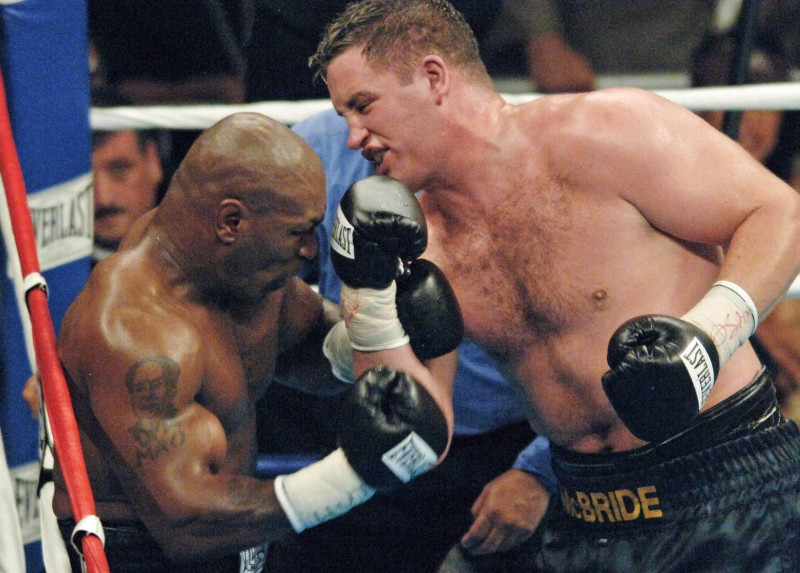 攻め込まれるタイソン。最後の試合は2005年6月、TKO負けとなった(Naoki Fukuda)