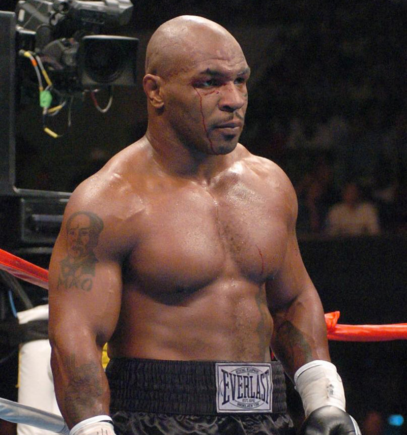 流血するタイソン、引退のひとつ前の試合で序盤優勢かと思われたが試合中に膝の靭帯が断裂し苦戦、流血もあり4RにKO負けしてしまう=2004年7月(Naoki Fukuda)