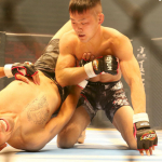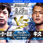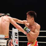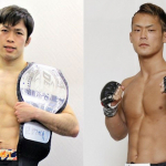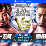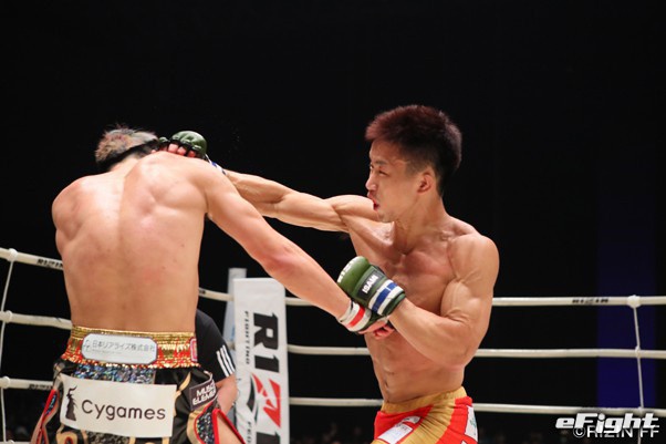 RIZINでのデビュー戦で那須川(左)に右ストレートを打ち込む藤田