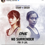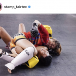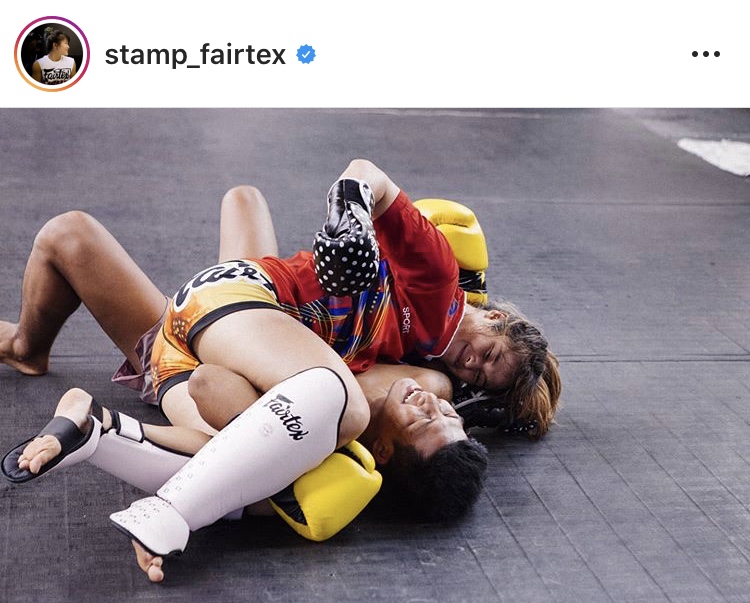 恋人のロッタンをグラウンドで抑えこみパンチするスタンプ @stamp_fairtex より
