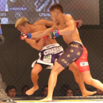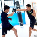 白川(右)が朝倉未来(左)と公開練習を行った