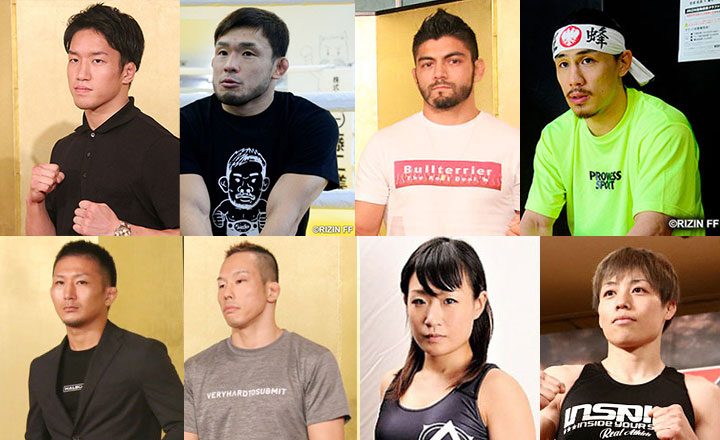 8.10『RIZIN.23』メインの朝倉海vs扇久保(左上)、セミの元谷vs魚井(左下)、8.9『RIZIN.22』メインの矢地vsソウザ(右上)、セミの浜崎vs前澤(右下)