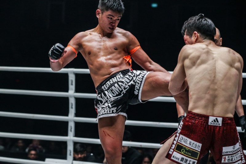 2020年1月の健太戦、強烈な左ミドルをヒットさせるセンマニー(C)ONE Championship