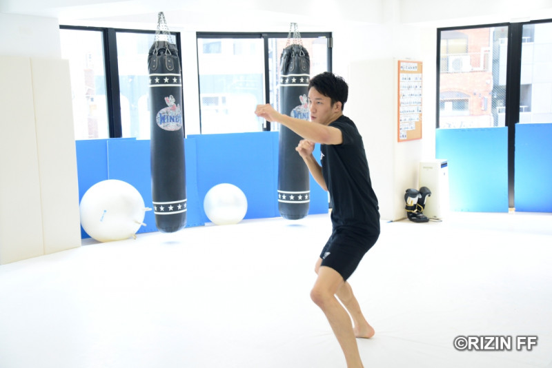 公開練習でパンチを放つ朝倉