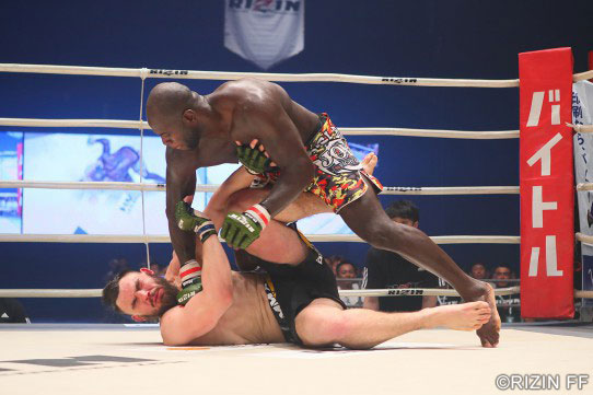 RIZINのリングで強烈なパウンドを叩き込むホーゼンストライク