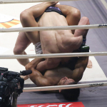 ギロチンチョークをガッチリと極めて一本勝ちする元谷