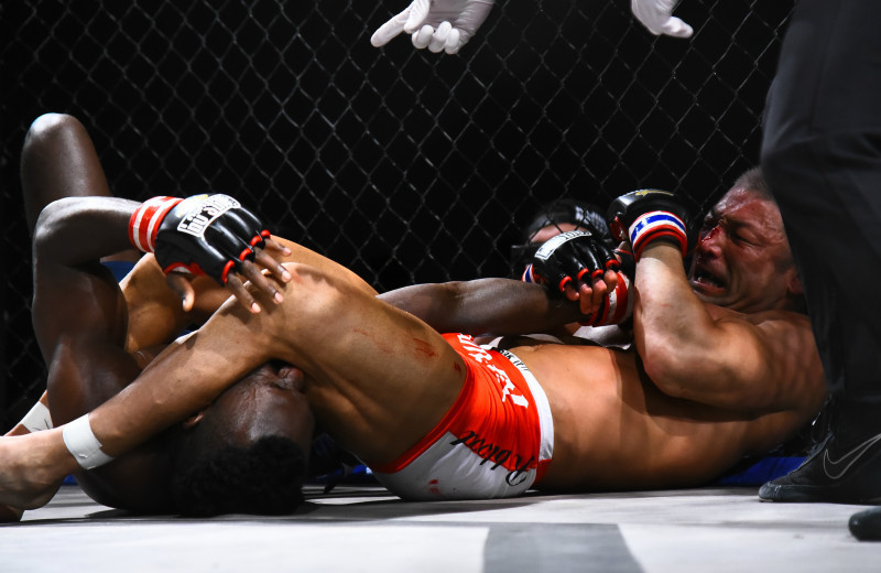 8月10日の『RIZIN.23』に参戦したルクク・ダリに腕十字を極め王座奪取する桜井(19年12月)