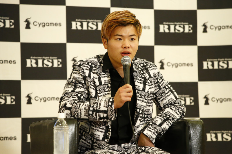 会見でコメントする那須川(C)RISE