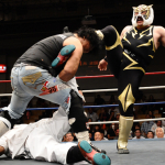 初代タイガーマスクらと戦う大仁田厚(中央)=2013年