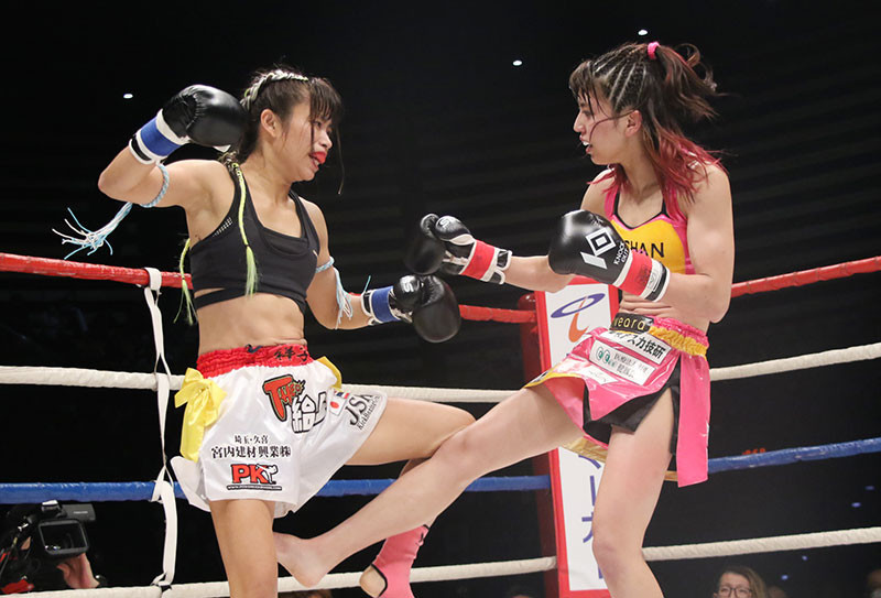 ぱんちゃん(右)は今年2月にはローキック連打でフルマーク勝利