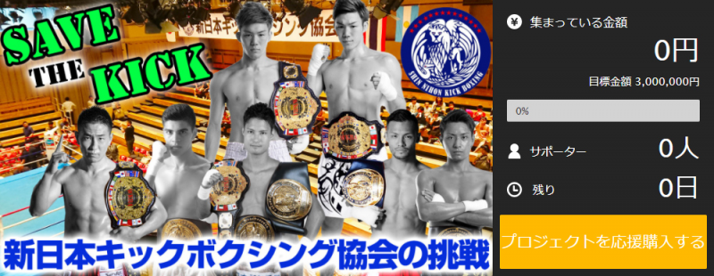 選手や大会実施支援のクラウドファンディングプロジェクト「新日本キックボクシング協会の挑戦 -Save the Kick-」