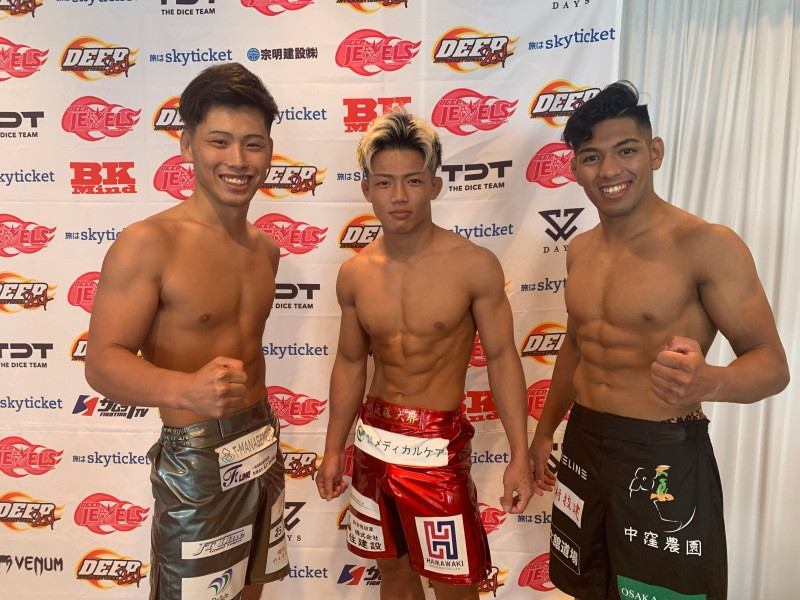 明日の大会に出場する西谷(左)ヒロヤ(中央)、畠山(右)