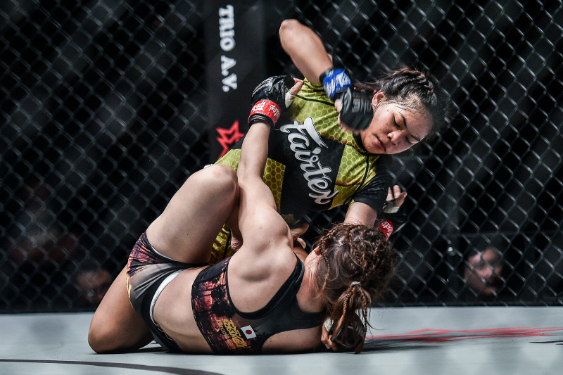 20年2月のシンガポール大会で山口芽生(=V.V Mei)にパウンドを見舞うデニス・ザンボアンガ