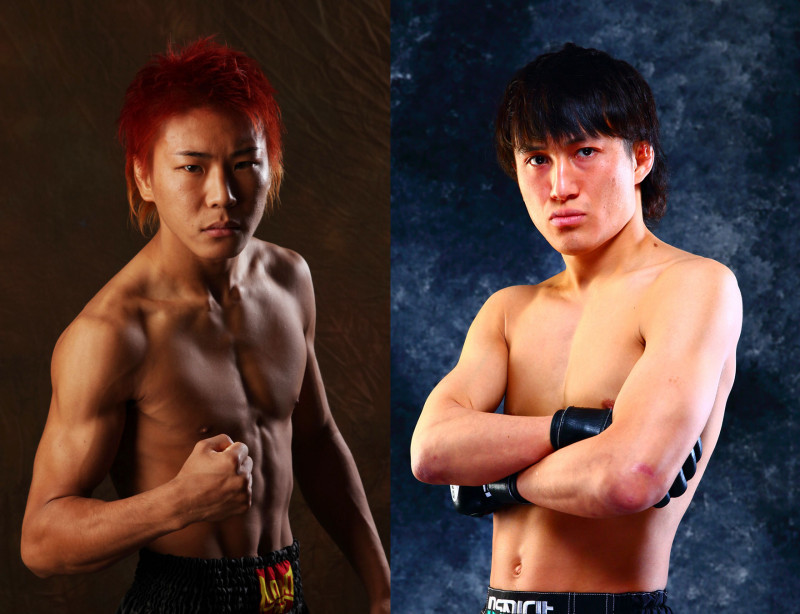 猿丸(左)は飯野(右)と対戦する
