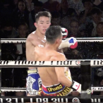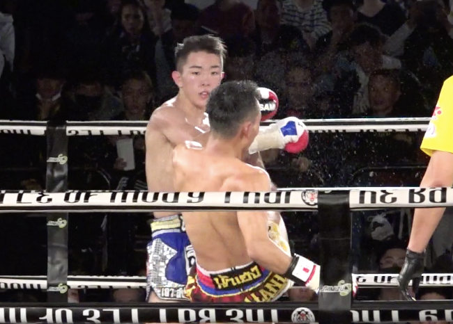 この右フックでKO勝利、世界王座を奪取した竜哉