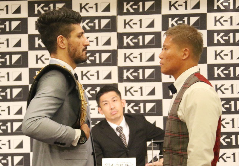 会見で向かい合う両者