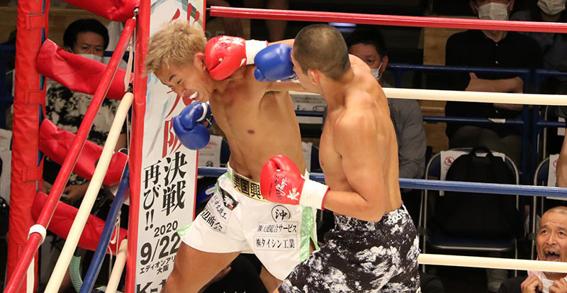 瑠久を強烈なパンチでなぎ倒す中野(右)